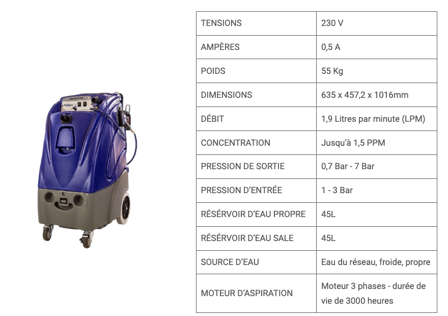 Les caractéristiques comprennent une lance de pulvérisation avec des fonctions de basse et haute pression et un système de récupération du vide à profil bas.