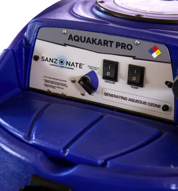L’Aquakart de Sanzonate™ est la seule machine de pulvérisation et d’aspiration au monde équipé de Nanobubble Aqueous Ozone (ozone aqueux à nanobulles, ou NAO). Il suffit de le remplir d’eau du robinet et l’Aquakart crée le NAO à l’intérieur. Vous pouvez même remplir des bouteilles en spray directement à partir de l’Aquakart.