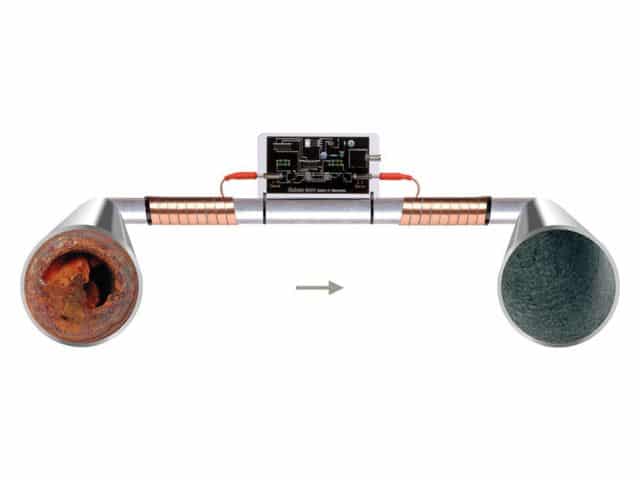 La technologie à impulsion Vulcan produit un effet d’électrophorèse qui à son tour génère une couche protectrice de carbonate de métal. Selon le type de tuyau, cette couche est faite de carbonate de cuivre, de carbonate de fer ou de carbonate de zinc et se dépose sur toutes les surfaces métalliques lisses. Elle protège le tuyau contre les substances agressives qui provoquent la corrosion.